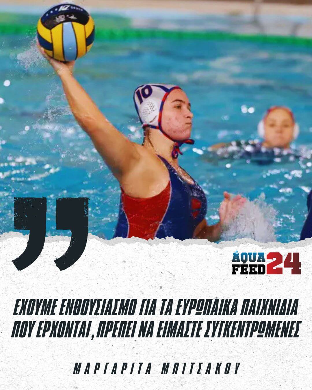 ΑΝΑΛΥΤΙΚΑ ΟΣΑ ΕΙΠΕ Η ΜΑΡΓΑΡΙΤΑ ΜΠΙΤΣΑΚΟΥ: «Έχουμε ανυπομονησία και ενθουσιασμό για τα παιχνίδια που έρχονται , σε κάθε περίπτωση , ανεξαρτήτως αντιπάλου, οφείλουμε να είμαστε έτοιμες , συγκεντρωμένες και παρούσες σε κάθε αγώνα , με στόχο να δείξουμε τον καλύτερο μας εαυτό μέσα στο νερό.»