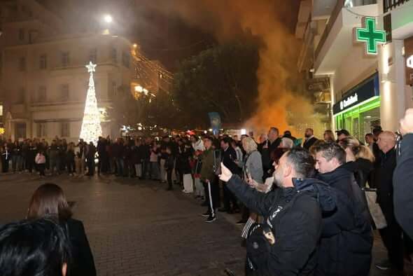 Ευχαριστεί ακόμη την εταιρεία “Μπουκέτο-Μπαλόνια-Πυροτεχνήματα” (Λεωφόρος 62 Μαρτύρων 28) για την χορηγία των βεγγαλικών, που φώτισαν τον ουρανό, στο κέντρο της πόλης.