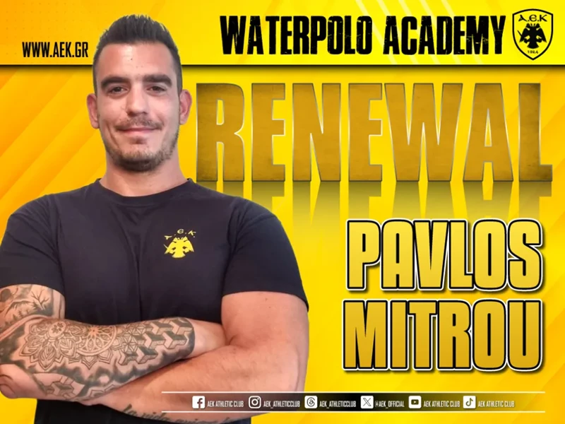 «Η ΑΕΚ ανακοινώνει την ανανέωση της συνεργασίας της με τον Παύλο Μήτρου, ο οποίος θα παραμείνει προπονητής της Ακαδημίας Υδατοσφαίρισης του Συλλόγου. Τη νέα αγωνιστική περίοδο αναμένεται να δοθεί μεγαλύτερη έμφαση σε όλο το φάσμα της Ακαδημίας, με στόχο να μπουν γερά θεμέλια για την εξέλιξη και ανάπτυξη των νεαρών αθλητών μας. Παύλο, καλή επιτυχία και τη νέα χρονιά!».