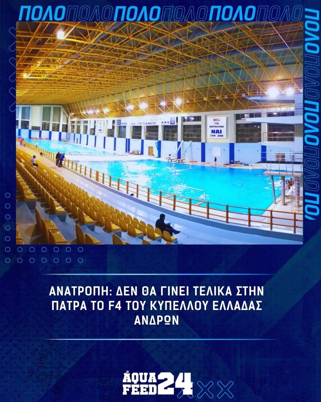Ανατροπή προέκυψε σχετικά με το κολυμβητήριο στο οποίο θα διεξαχθεί το Final 4 του Κυπέλλου Ελλάδας Ανδρών, καθώς οι τοπικές αρχές της Πάτρας εξέφρασαν την επιθυμία να μην φιλοξενηθεί η διοργάνωση το συγκεκριμένο χρονικό διάστημα στο «Α.Πεπανός», λόγω της επετείου της τραγωδίας στα Τέμπη (28/2).