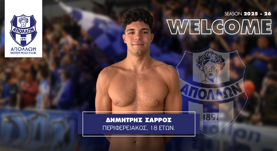 Ο γεννηθείς στις 8/1/2008 Δημήτρης Σάρρος, που αγωνίζεται στην αριστερή πλευρά της περιφέρειας, όπου στον Απόλλωνα θα πλαισιώσει τους Μπογκντάνοβιτς, Ντάουμπε και Παππά, μιλώντας στην επίσημη σελίδα του τμήματος www.apollonwaterpolo.gr τόνισε για τη μεταγραφή του στους «κυανόλευκους»: «Είμαι πολύ χαρούμενος που εντάσσομαι στην οικογένεια του Απόλλωνα και γίνομαι αθλητής αυτού του ιστορικού συλλόγου. Ανυπομονώ να ξεκινήσω και θα προσπαθήσω πάρα πολύ να βοηθήσω την ομάδα να πετύχει τους στόχους της.