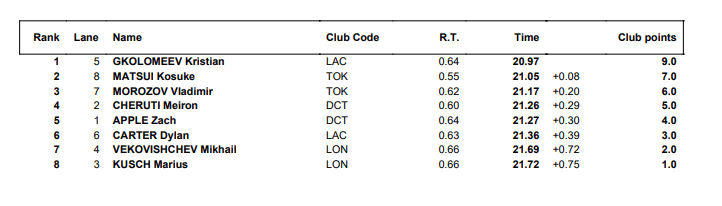 Τι και αν ο Μορόζοφ ήταν σχεδόν αήττητος στα 50μ. ελεύθερο τον προηγούμενο χρόνο, ο Κρίστιαν Γκολομέεβ με έναν εκπληκτικό χρόνο στη Βουδαπέστη τράβηξε τα φώτα επάνω του για ακόμη μια φορά.