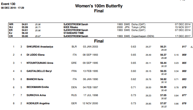 Η Ντουντουνάκη έχει κάνει μια αλάνθαστη και απίστευτη κούρσα, ξεπερνώντας κάθε προσδοκία στον τελικό! Η Άννα ήταν 1η μετά τα 25μ. και 2η μετά τα 50μ. με τα μετάλλια να κρίνονται οριακά!