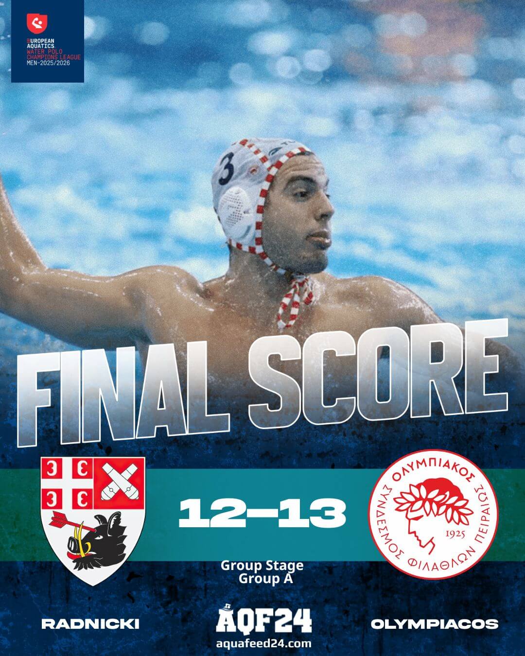 Με ηγέτη και σκόρερ τον Ούγγρο αστέρα του Γκέργκο Ζάλανκι, ο Ολυμπιακός πήρε μια ακόμα τεράστια νίκη, την τρίτη του σε ισάριθμους αγώνες στον Α’ Όμιλο του Champions League και μάλιστα εκτός έδρας και συνεχίζει να προελαύνει. Οι ερυθρόλευκοι επιβλήθηκαν με 13-12 επί της σερβικής Ραντνίτσκι, μέσα στο κολυμβητήριο του Κραγκούγεβατς και με 9 βαθμούς απολαμβάνουν τη μοναξιά της κορυφής στη βαθμολογία του συγκεκριμένου Ομίλου και πάνε ολοταχώς για την πρόκριση στα προημιτελικά.