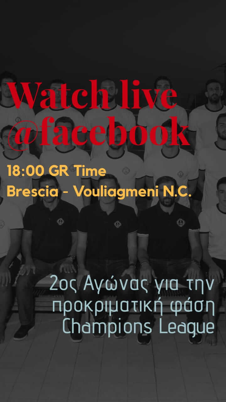 Με γεγονός ότι οι διοργανωτές του ομίλου στη Βουδαπέστη ΔΕΝ θα μεταδώσουν την αναμέτρηση της Βουλιαγμένης με τη Μπρέσια, η ελληνική ομάδα θα δείξει τον αγώνα LIVE από την επίσημη σελίδα της στο Facebook!