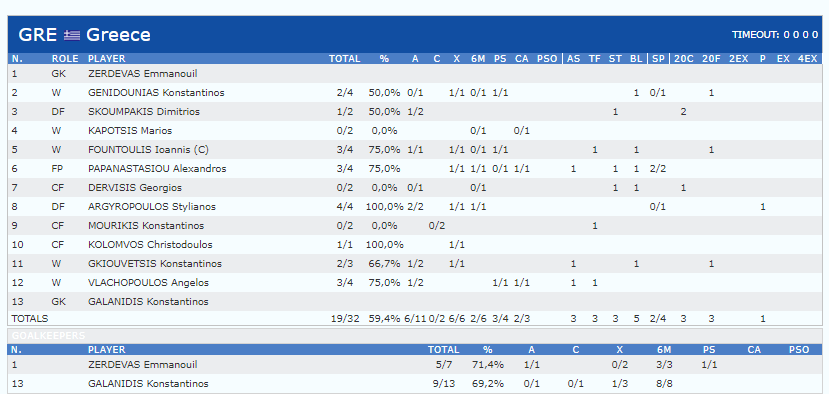 Πρώτος σκόρερ της αναμέτρησης με τον Καναδά ήταν ο Στέλιος Αργυρόπουλος με 4/4 σουτ, ενώ από τρία έκαστος σημείωσαν οι Φουντούλης, Παπαναστασίου και Βλαχόπουλος.