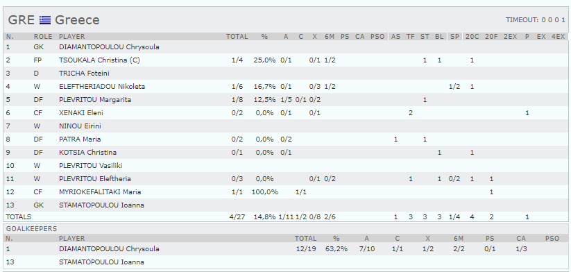 Στο 5:38 η Κότσια αποβλήθηκε ωστόσο η Διαμαντοπούλου με μεγάλη απόκρουση κράτησε το 1-1, ενώ στο 4:51 η Μαργαρίτα Πλευρίτου διέλυσε το ολλανδικό ανάμεσα με ένα φοβερό σουτ για το 1-2 της Ελλάδας που είχε βρει δύο μεγάλα γκολ, δύο σουτ με ρίσκο, από την περιφέρεια!