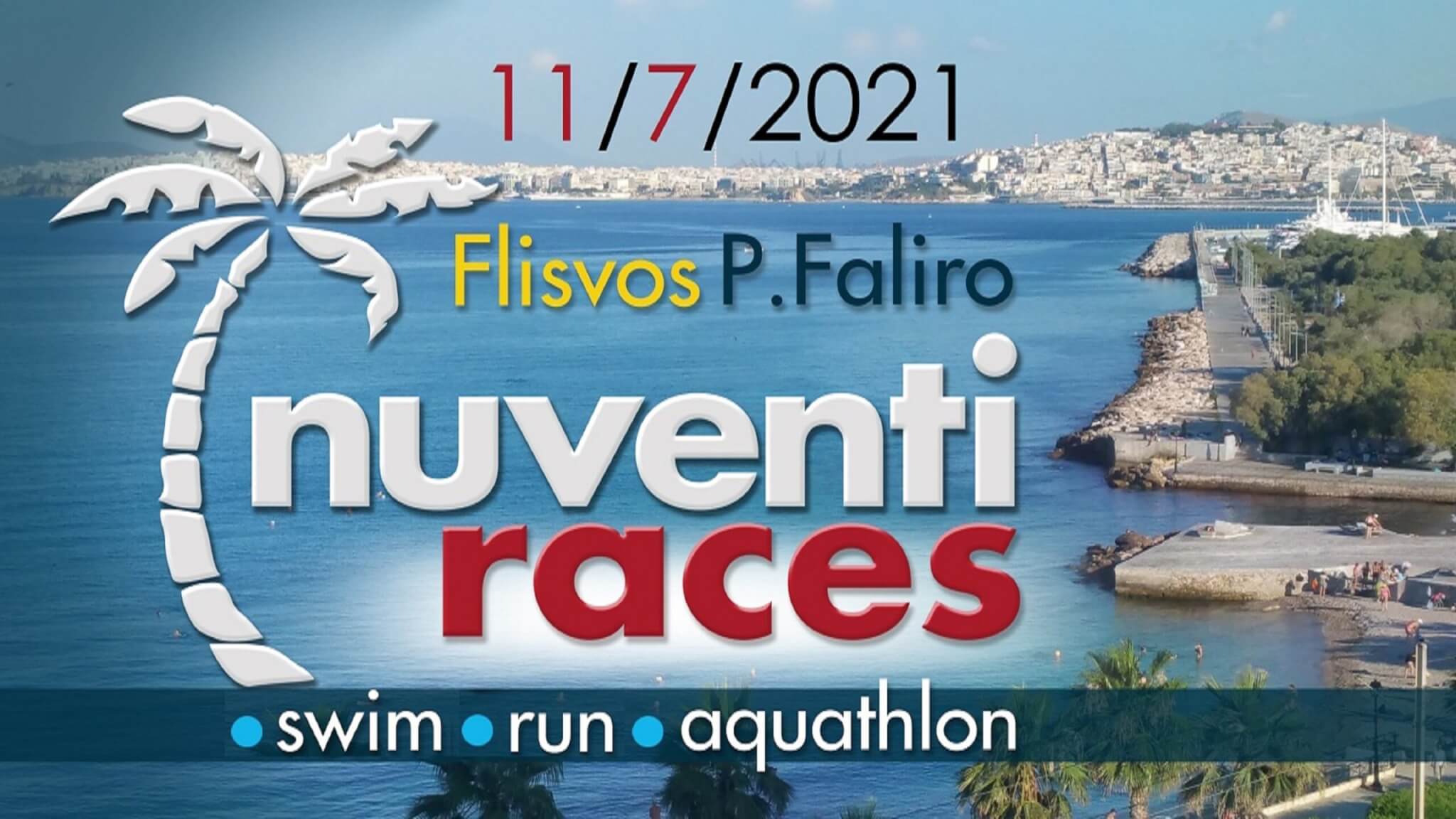 Η Nuventi, υπό την αιγίδα του Δήμου Π. Φαλήρου και σε συνεργασία με το Πολιτιστικό & Αθλητικό Κέντρο του Δήμου, διοργανώνει την Κυριακή 11 Ιουλίου 2021 στον Φλοίσβο του Π. Φάληρου τους 8ους Αγώνες “Nuventi Races” με Aquathlon Sprint, Σκυταλοδρομία Aquathlon Sprint και Κολυμβητικά events 1Κ και 3Κ στη θάλασσα. Οι αγώνες τελούν υπό τη αιγίδα της Ε.Ο.ΜΟ.Π. και θα διεξαχθούν σύμφωνα με τα υγειονομικά πρωτόκολλα που θα ισχύουν, τα οποία μέχρι στιγμής περιλαμβάνουν τις παρακάτω οδηγίες προς τους συμμετέχοντες και αναμένεται ότι θα γίνουν ευνοϊκότερα από τις αρχές Ιουλίου: