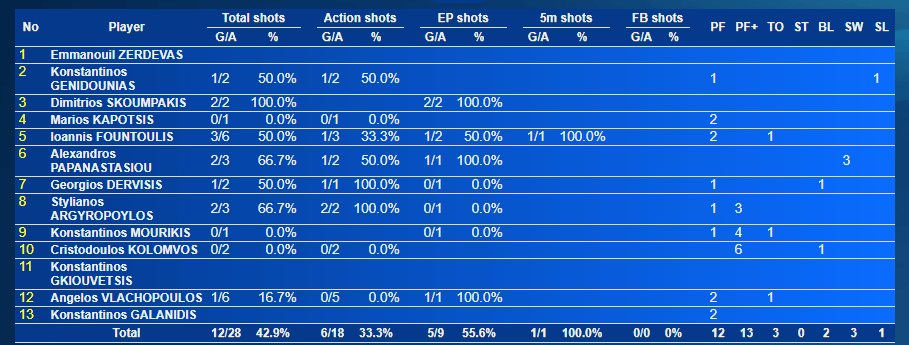 MVP της αναμέτρησης ήταν δικαίως ο Κωνσταντίνος Γαλανίδης, με καίριες αποκρούσεις, ενώ πρώτος Έλληνας σκόρερ ήταν ο Γιάννης Φουντούλης με τρία τέρματα.
