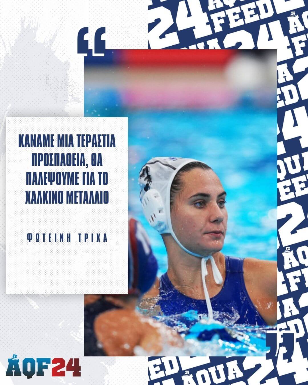 Την ήττα στα πέναλτι γνώρισε η Εθνική Ομάδα Υδατοσφαίρισης των Γυναικών, όμως δεν αξίζουν δάκρυα για αυτήν την ομάδα που κάνει μονίμως υπερβάσεις. Αμέσως μετά την λήξη του πρώτου ημιτελικού του Ευρωπαϊκού Πρωταθλήματος, παραχώρησε δηλώσεις η κορυφαία παίκτρια στον κόσμο για το 2025, Φωτεινή Τριχά και στις οποίες τόνισε πως είναι υπερήφανη για την προσπάθεια που κατέβαλε η Παγκόσμια Πρωταθλήτρια κόντρα σε μια πολύ ισχυρή ομάδα, όπως η Ουγγαρία.