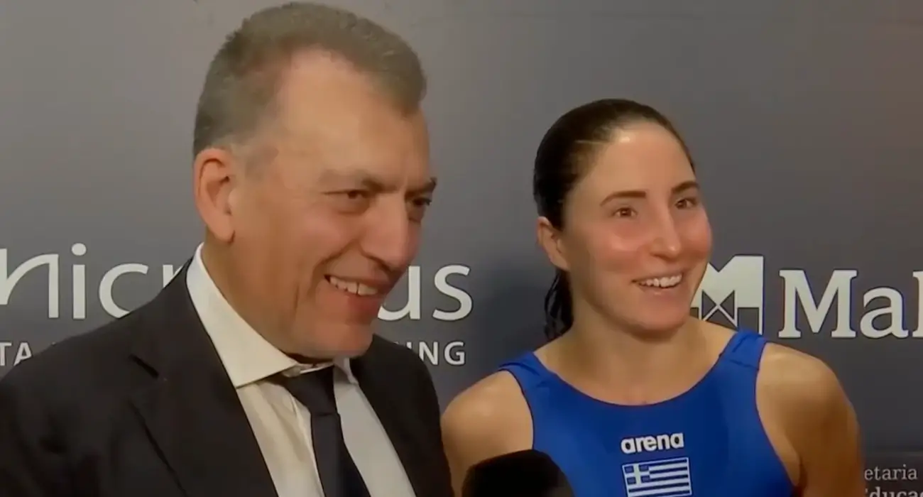 Μετά το τέλος της αναμέτρησης, ο Υπουργός βρέθηκε δίπλα στην αρχηγό της Εθνικής, Ελευθερία Πλευρίτου, μιλώντας στην κάμερα της ΕΡΤ για τη νέα επιτυχία του ελληνικού πόλο: