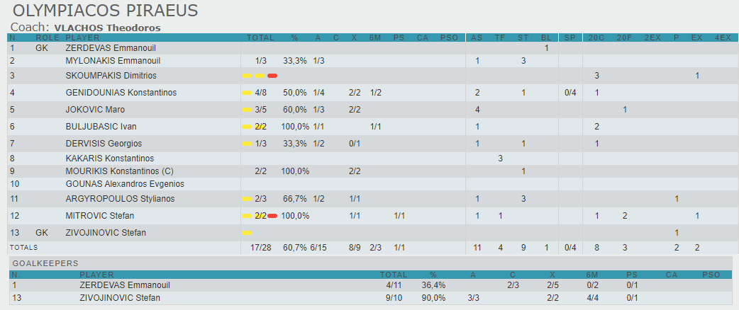 Τα στατιστικά των παικτών του Ολυμπιακού