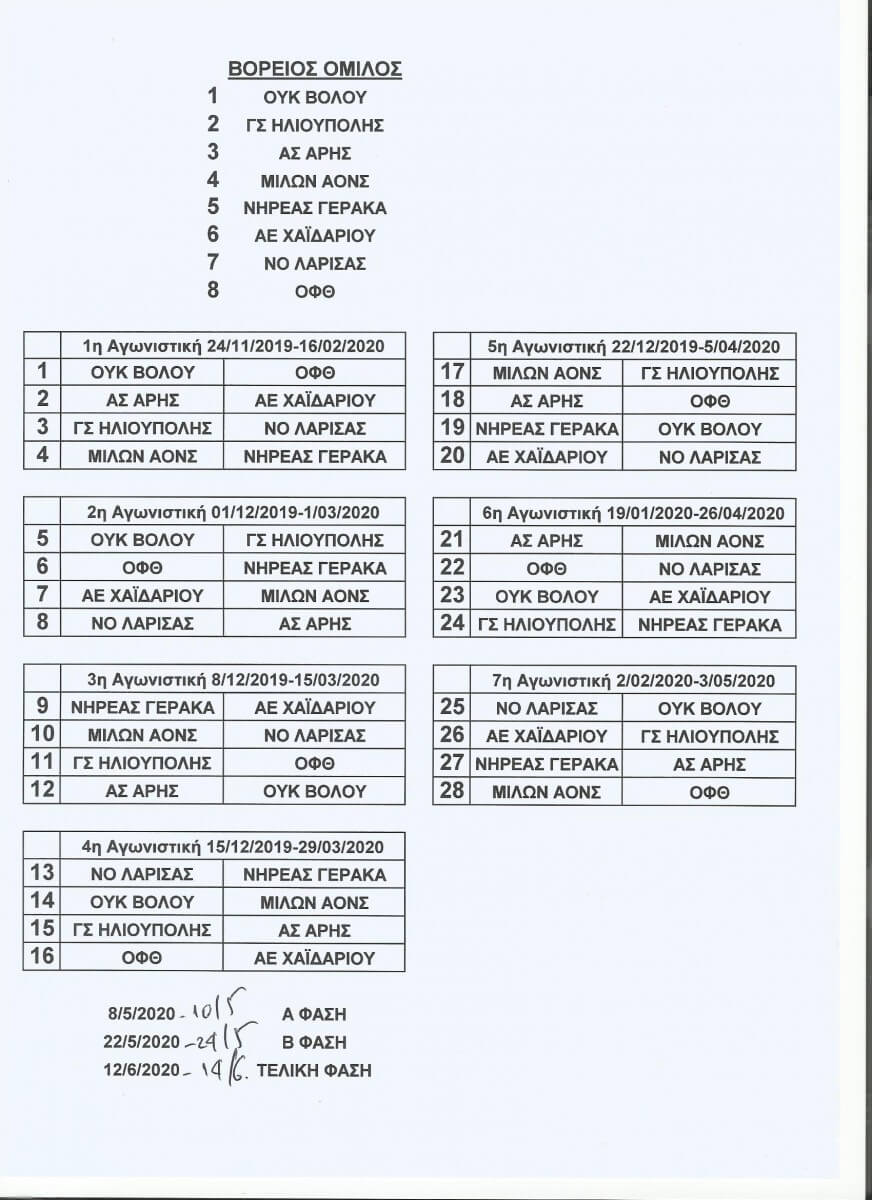 Στις ΦΩΤΟ το αναλυτικό πρόγραμμα της Α’ Φάσης του πρωταθλήματος.