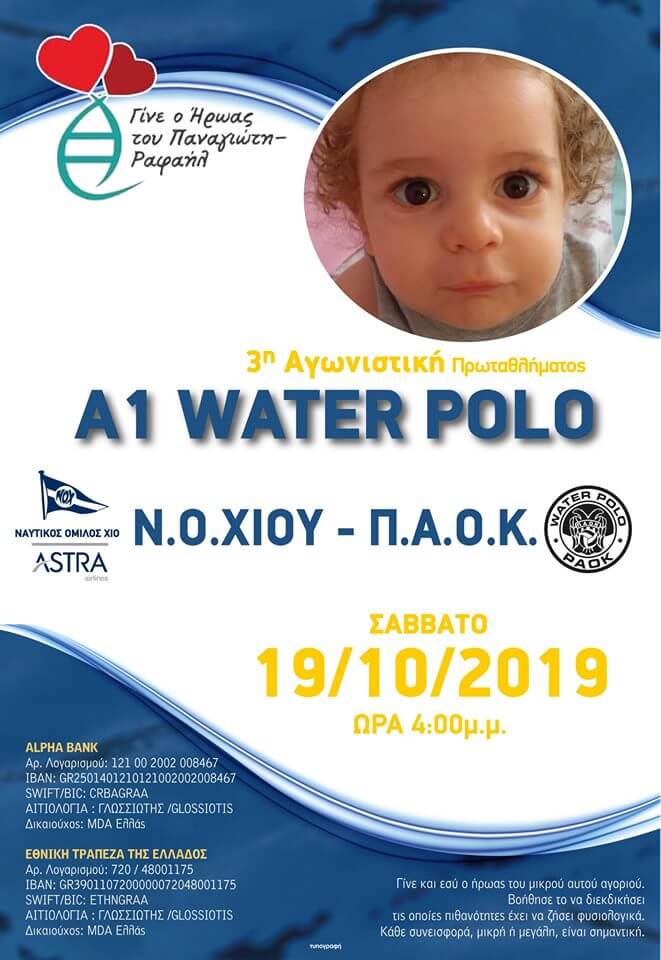 Μετά την αναμέτρηση Υδραϊκός – ΝΟ Χανίων, ακόμη ένας αγώνας της Α1 κατηγορίας ανδρών θα διεξαχθεί για την ενίσχυση της προσπάθειας της συγκέντρωσης χρημάτων για τον μικρό Παναγιώτη – Ραφαήλ.