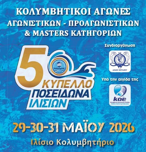 Ο Κολυμβητικός Όμιλος Ποσειδώνας Ιλισίων διοργανώνει το «5ο Κύπελλο Ποσειδώνα Ιλισίων», ένα τριήμερο γεμάτο δράση και αγωνιστική ένταση, από τις 29 έως τις 31 Μαΐου 2026, στο Ανοικτό Δημοτικό Κολυμβητήριο Ιλισίων.