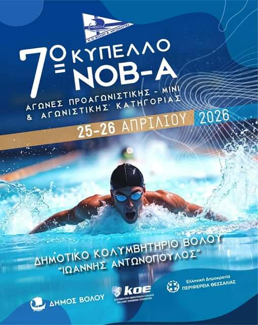 Κολύμβηση: 7ο Κύπελλο ΝΟΒΑ στον Βόλο 25–26 Απριλίου 2026