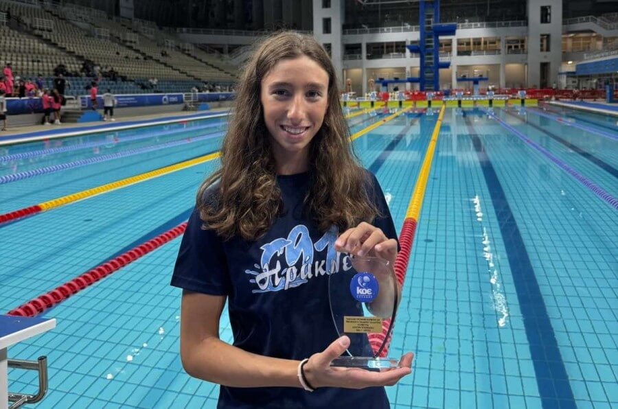 Η 14χρονη αθλήτρια, με επίδοση 2:33.26, σημείωσε πανελλήνιο ρεκόρ στα 200 πρόσθιο Παγκορασίδων Α’.