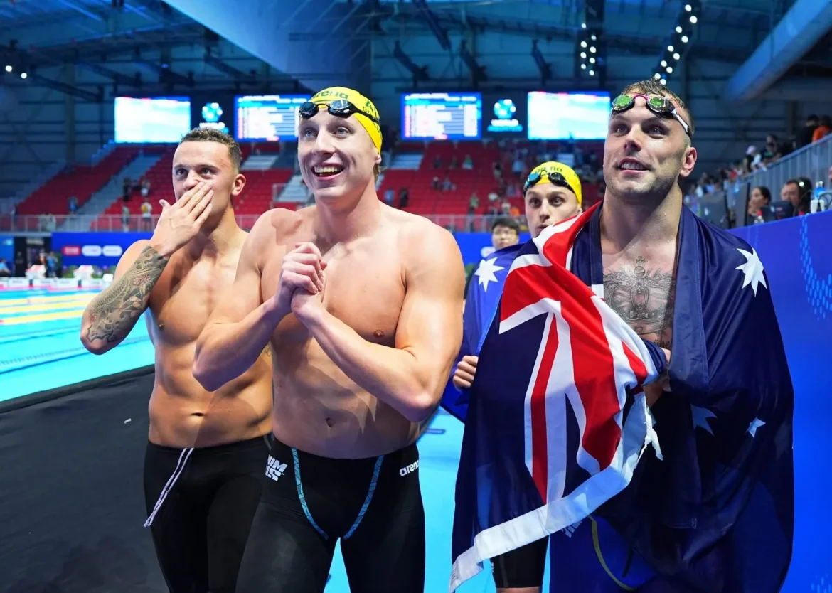 Η Αυστραλία έκανε εντυπωσιακή εκκίνηση στο Παγκόσμιο Πρωτάθλημα Υγρού Στίβου 2025 στη Σιγκαπούρη, κατακτώντας χρυσό και στις δύο σκυταλοδρομίες 4×100 μ. ελεύθερο ανδρών και γυναικών, ανοίγοντας με εκρηκτικό τρόπο το αγωνιστικό πρόγραμμα της κολύμβησης.