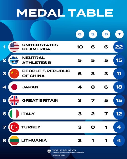 Η ΗΠΑ στην κορυφή των μεταλλίων στο Παγκόσμιο Πρωτάθλημα νέων/νεανίδων. Πλήρης πίνακας.