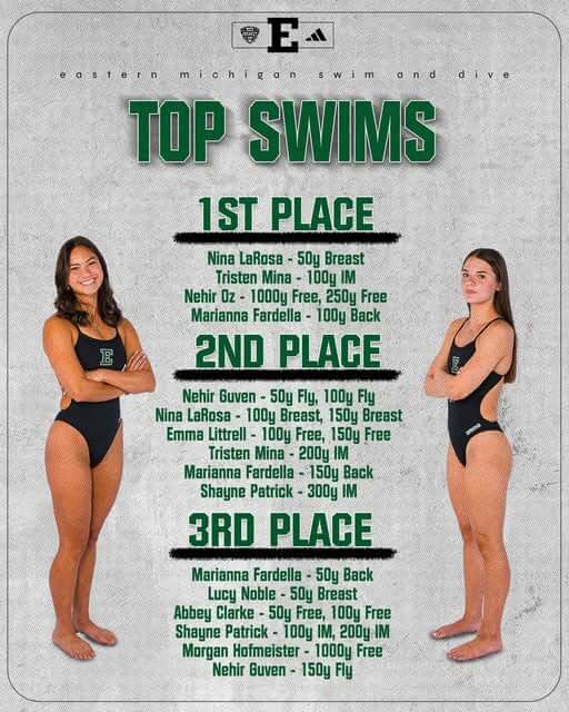Τρεις θέσεις στο βάθρο για τη νεαρή κολυμβήτρια του Eastern Michigan University!