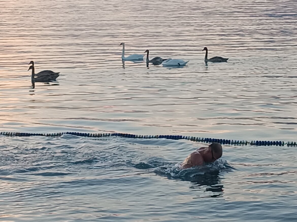 Η φωτογραφία που μας φτιάχνει τη μέρα έρχεται από τους Ωρεούς της Εύβοιας, με τον φακό του παλιού πρωταθλητή κολύμβησης Αντώνη Τσώνου. Ο Αντώνης έχει δημιουργήσει την ερασιτεχνική ομάδα Ν.Ο.Δ. Ωρεών, που προπονείται στη θάλασσα — και κάποιες φορές έχει για… παρέα κύκνους.