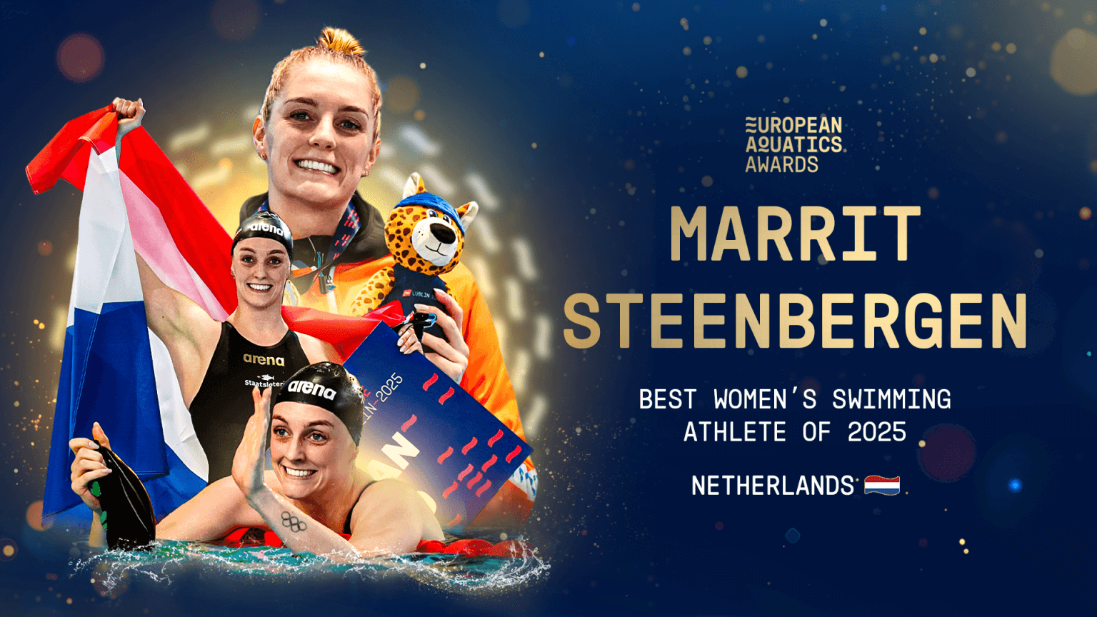 Η Marrit Steenbergen αναδείχθηκε Κορυφαία Γυναίκα Κολυμβήτρια του 2025 στα European Aquatics Athlete of the Year Awards, συγκεντρώνοντας το 36,29% της συνολικής ψηφοφορίας, έπειτα από μια σεζόν εξαιρετικών επιδόσεων τόσο σε πισίνα 50μ όσο και σε 25μ.