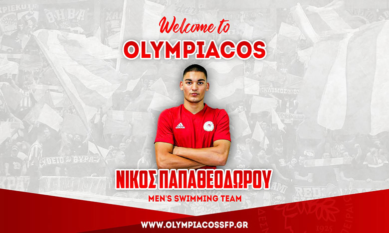 Ο ΟΛΥΜΠΙΑΚΟΣ Σ.Φ.Π. ανακοινώνει την έναρξη της συνεργασίας του με τον Νίκο Παπαθεοδώρου. Ο 16χρονος αθλητής (ημ. γέννησης 22/4/2009, 1,80μ.) εντάσσεται στην ομάδα κολύμβησης του συλλόγου. Ο Νίκος Παπαθεοδώρου αγωνίζεται στα 50μ., 100μ. και 200μ. ύπτιο και θεωρείται από τα μεγαλύτερα ταλέντα της Ελληνικής κολύμβησης. Ο Παπαθεοδώρου στον Ολυμπιακό.