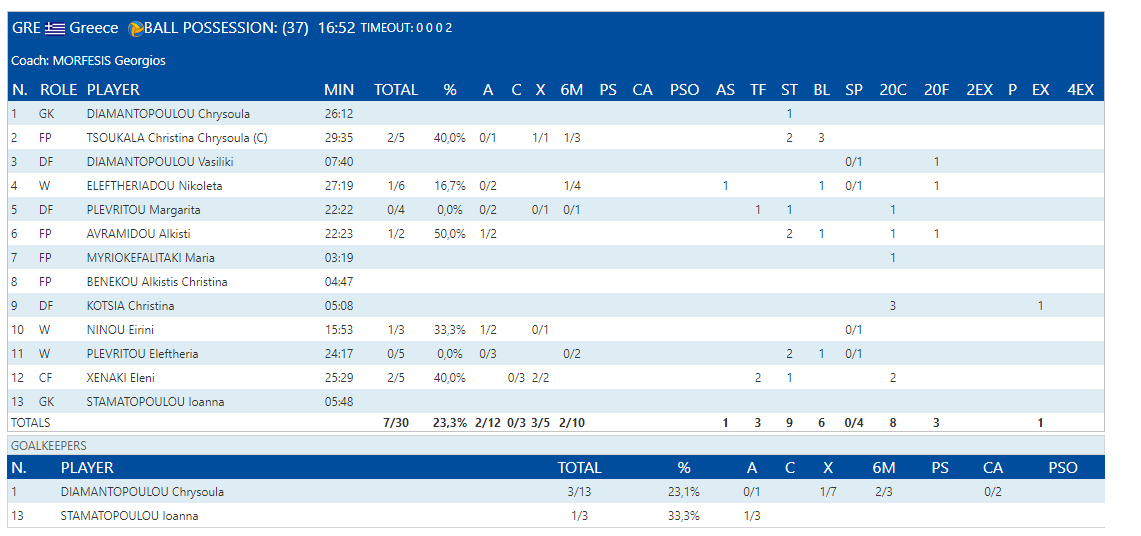 Στο 4:20 η Μυριοκεφαλιτάκη κέρδισε την ποινή στα 2μ. και στο παραπάνω δεν κατάφερε η Εθνική να σκοράρει. Εν συνεχεία, στο 3:20 η Ελευθεριάδου έπαιξε εξαιρετική άμυνα, παρ’όλα αυτά δόθηκε ποινή στη Μυριοκεφαλιτάκη αρκετά αυστηρά. Σε εκείνη τη φάση έγινε χρήση του VAR για να διαπιστωθεί εάν μπήκε γκολ και πράγματι μέτρησε για το 6-7 της Ρωσίας με σκόρερ την Προκοφίεβα.