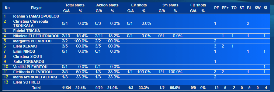 Στο τρίτο οκτάλεπτο, η Γκλίζινα ισοφάρισε σε 5-5, ωστόσο η Ελευθερία Πλευρίτου κέρδισε πέναλτι και ευστόχησε η ίδια για το 6-5, ενώ αμέσως μετά η Εθνική έβγαλε αποτελεσματικό λιγότερο.