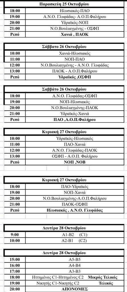 Α’ Όμιλος: ΝΟΒ, ΠΑΟΚ, ΑΝΟ Γλυφάδας, ΑΟΠ Φαλήρου, ΟΣΦΠ.