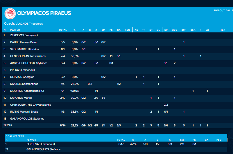 Στο 6:48 ο Κάκαρης κέρδισε αποβολή και ο Μάριος Καπότσης με ένα μεγάλο γκολ ισοφάρισε για τον Ολυμπιακό σε 6-6 στο παραπάνω! Εξαιρετική κίνηση από τον Έλληνα διεθνή.