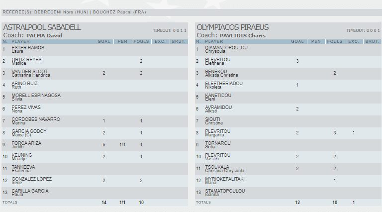 Το αποτέλεσμα της αναμέτρησης δίνει προβάδισμα πρόκρισης στη Σαμπαντέλ, η οποία επικράτησε 14-12 των «ερυθρόλευκων» με τη Φόρκα να γράφει το τελικό σκορ 15 δευτερόλεπτα πριν τη λήξη, ενόσω ο Ολυμπιακός πάλευε να ισοφαρίσει.