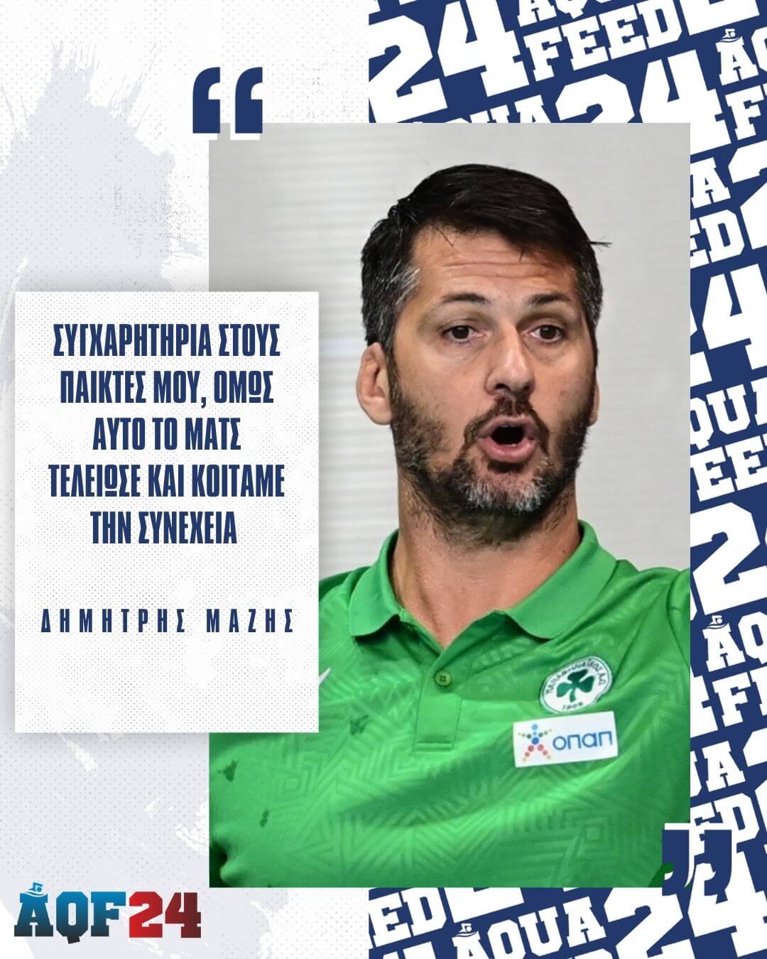 ΟΣΑ ΔΗΛΩΣΕ Ο ΔΗΜΗΤΡΗΣ ΜΑΖΗΣ: «Πετύχαμε έναν από τους στόχους μας που ήταν η πρόκριση στο φάιναλ φορ του Κυπέλλου Ελλάδας. Για εμάς είναι ένα από τα πολλά νοκ άουτ ματς που έχουμε μπροστά μας και τα καταφέραμε. Θέλω να δώσω συγχαρητήρια στους παίκτες μου, ωστόσο αυτό το ματς τελείωσε και κοιτάμε τη συνέχεια. Πλέον, έχουμε σταθεροποιήσει τις παρουσίες μας σε φάιναλ φορ και θέλουμε να συνεχίσουμε σε Top επίπεδο».