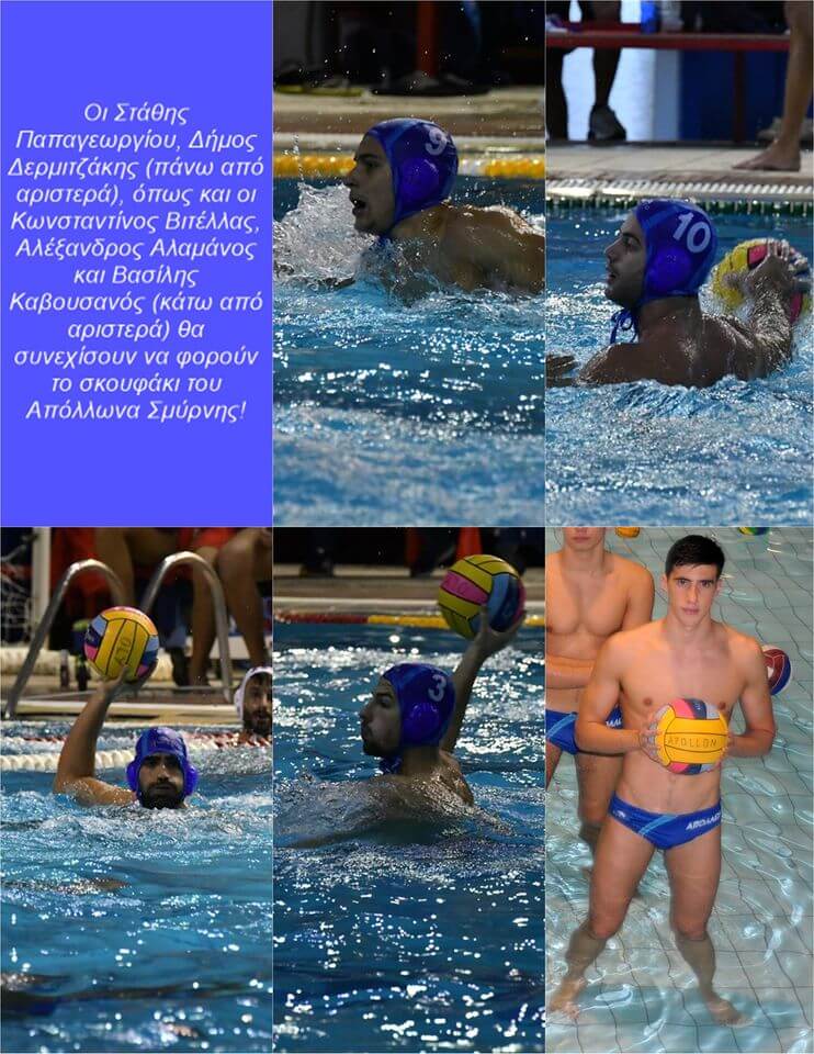 Ο APOLLON SMYRNIS Water Polo ανακοινώνει την επέκταση της συνεργασίας για έναν ακόμη χρόνο με τους Αλέξανδρο Αλαμάνο, Κωσταντίνο Βιτέλλα, Δημοσθένη Δερμιτζάκη, Στάθη Παπαγεωργίου και Βασίλη Καβουσανό!