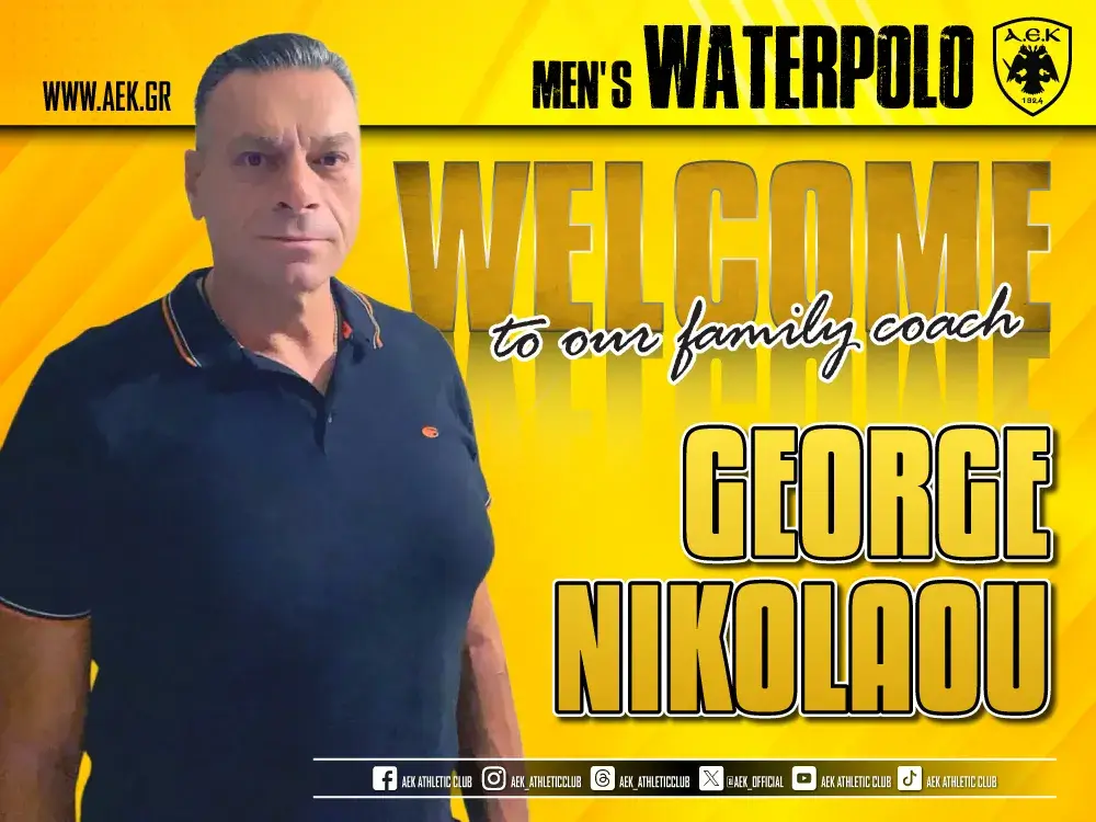 Η ΑΕΚ βρίσκεται στην ευχάριστη θέση να ανακοινώσει την έναρξη της συνεργασίας της με τον Γιώργο Νικολάου, ο οποίος αναλαμβάνει την τεχνική ηγεσία της ανδρικής ομάδας Πόλο, καθώς και το τμήμα Εφήβων της Ακαδημίας του Συλλόγου.
