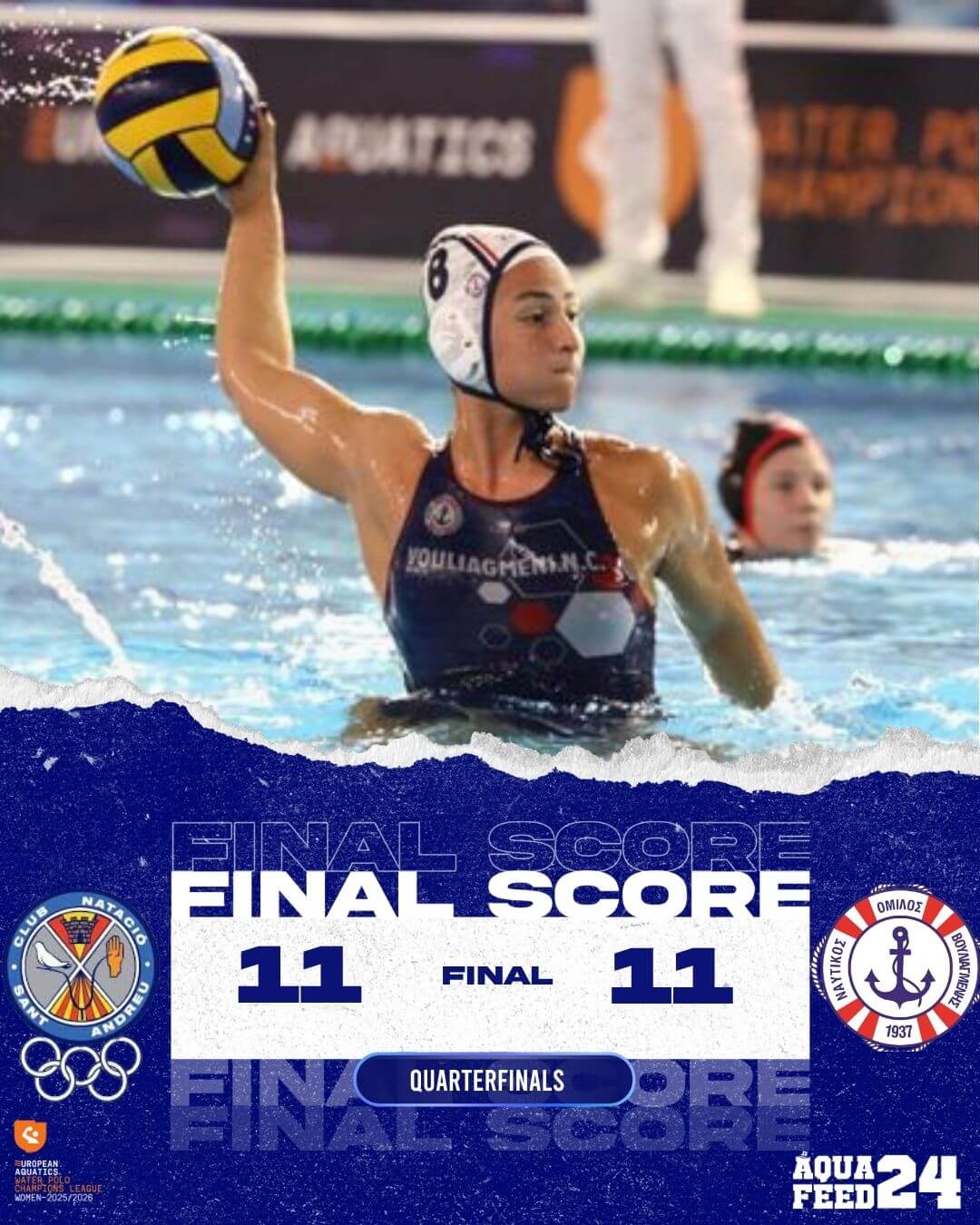 Σε ένα ματς πολύ υψηλού επιπέδου που διεξήχθη στην Βαρκελώνη, ο ΝΟ Βουλιαγμένης έφυγε με την ισοπαλία από την έδρα της Σαντ Αντρέου, στο πλαίσιο της προημιτελικής φάσης του Champions League γυναικών.