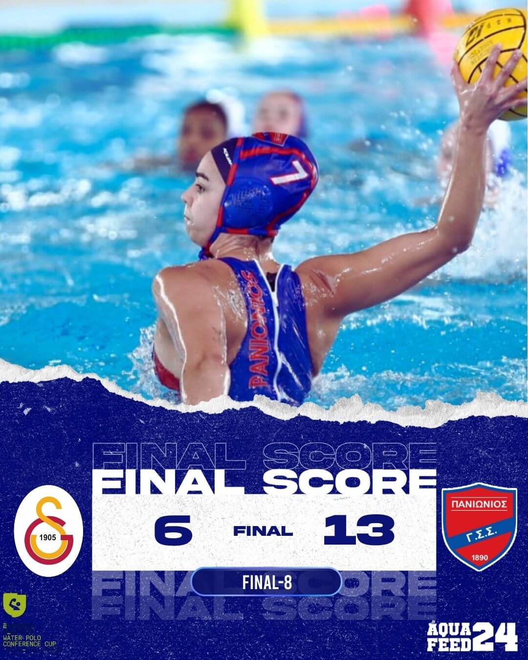 Την δεύτερη νίκη του σε ισάριθμους αγώνες στο Final-8 του Conference Cup γυναικών πέτυχε ο Πανιώνιος, καθώς επικράτησε εύκολα της τουρκικής Γαλατάσαραϊ με 13-6 στην Νέα Σμύρνη.