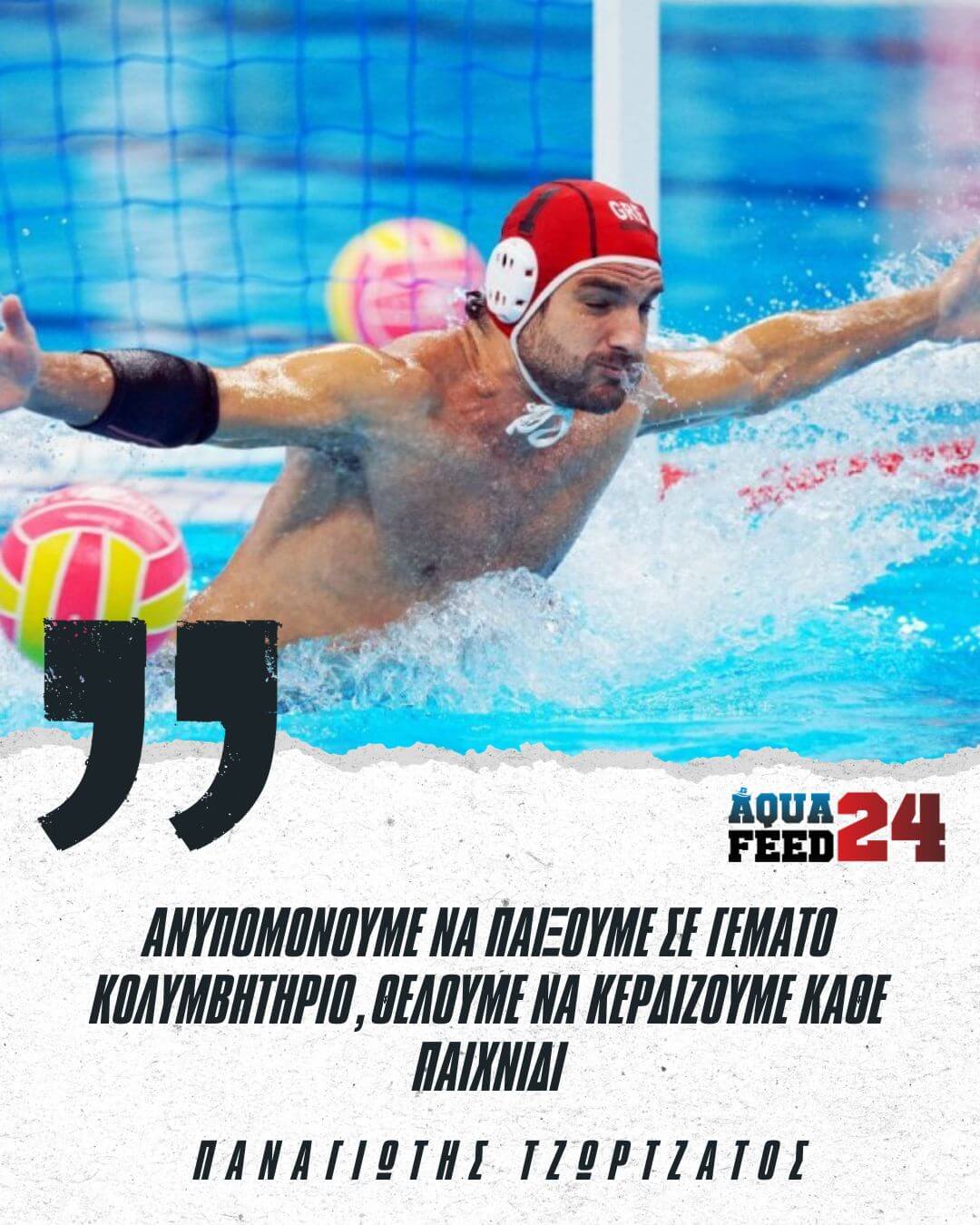 Παράλληλα, ο διεθνής άσσος του Ολυμπιακού και καλύτερος τερματοφύλακας στο περασμένο Παγκόσμιο Πρωτάθλημα Υγρού Στίβου της Σιγκαπούρης, μίλησε και για τους στόχους της Εθνικής Ομάδας, τονίζοντας πως τόσο ο ίδιος όσο και οι συμπαίκτες του στοχεύουν την νίκη ανεξαρτήτου αντιπάλου.
