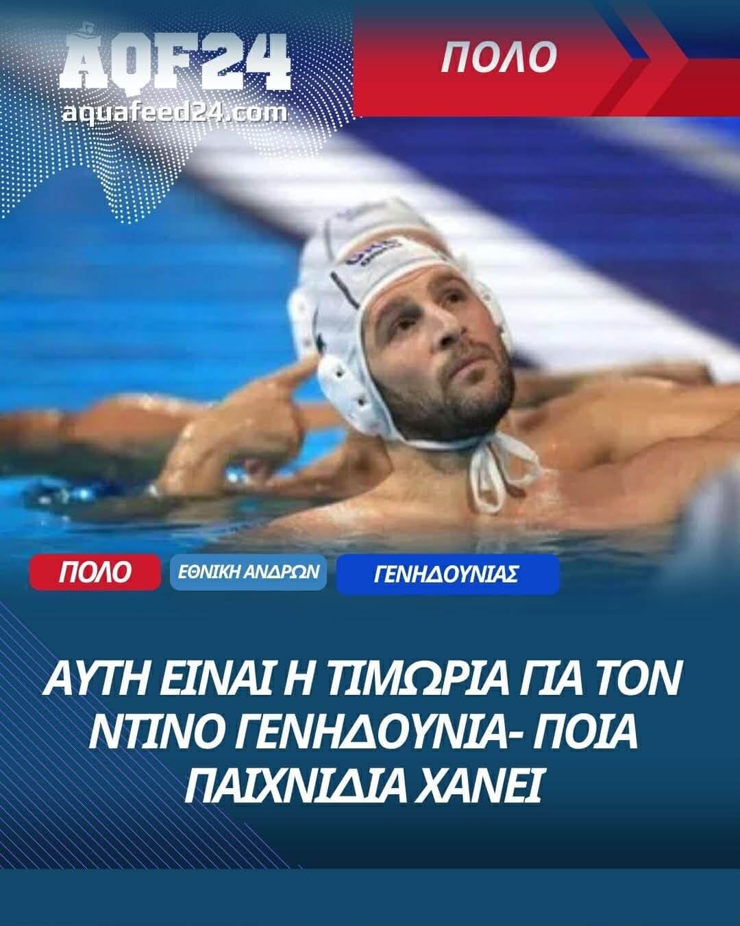 Τις υπηρεσίες του Ντίνου Γενηδουνιά θα στερηθεί για τα επόμενα δύο παιχνίδια η Εθνική Ανδρών, καθώς τιμωρήθηκε με ποινή δύο αγωνιστικών για το ακούσιο χτύπημα του πάνω σε παίκτη της Κροατίας . Έτσι λοιπόν, Θοδωρής Βλάχος δεν θα έχει διαθέσιμο τον αρχηγό στον αγώνα με την Τουρκία (17/1), καθώς και στο σημαντικό παιχνίδι με την Ιταλία (19/1) του Σάντρο Καμπάνια που ενδέχεται να είναι καθοριστικό για την είσοδο στην τετράδα του Ευρωπαϊκού Πρωταθλήματος που διεξάγεται στο Βελιγράδι.