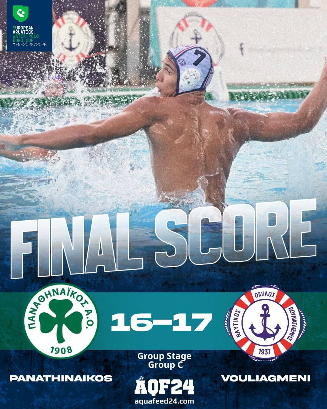 Σε ένα παιχνίδι πολύ υψηλού επιπέδου ανάμεσα σε δύο από τις καλύτερες ομάδες της Ελλάδας, ο ΝΟ Βουλιαγμένης έφυγε με το διπλό από το Σεράφειο, καθώς επιβλήθηκε για την 3η αγωνιστική του Euro Cup ανδρών με 17-16 του Παναθηναϊκού στην ψυχοφθόρα διαδικασία των πέναλτι, παίρνοντας έτσι μία άτυπη «ρεβάνς» για την ήττα στον Λαιμό, για την Waterpolo League ανδρών.