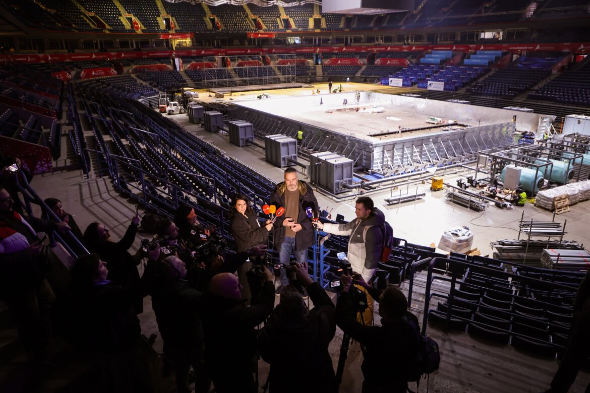 Ο Nemanja Marijan, Γενικός Γραμματέας της Ομοσπονδίας Υδατοσφαίρισης της Σερβίας, υποδέχθηκε σήμερα εκπροσώπους των ΜΜΕ στην Αρένα του Βελιγραδίου, όπου βρίσκεται σε εξέλιξη η κατασκευή της πισίνας που θα φιλοξενήσει το Ευρωπαϊκό Πρωτάθλημα Υδατοσφαίρισης από τις 10 έως τις 25 Ιανουαρίου.