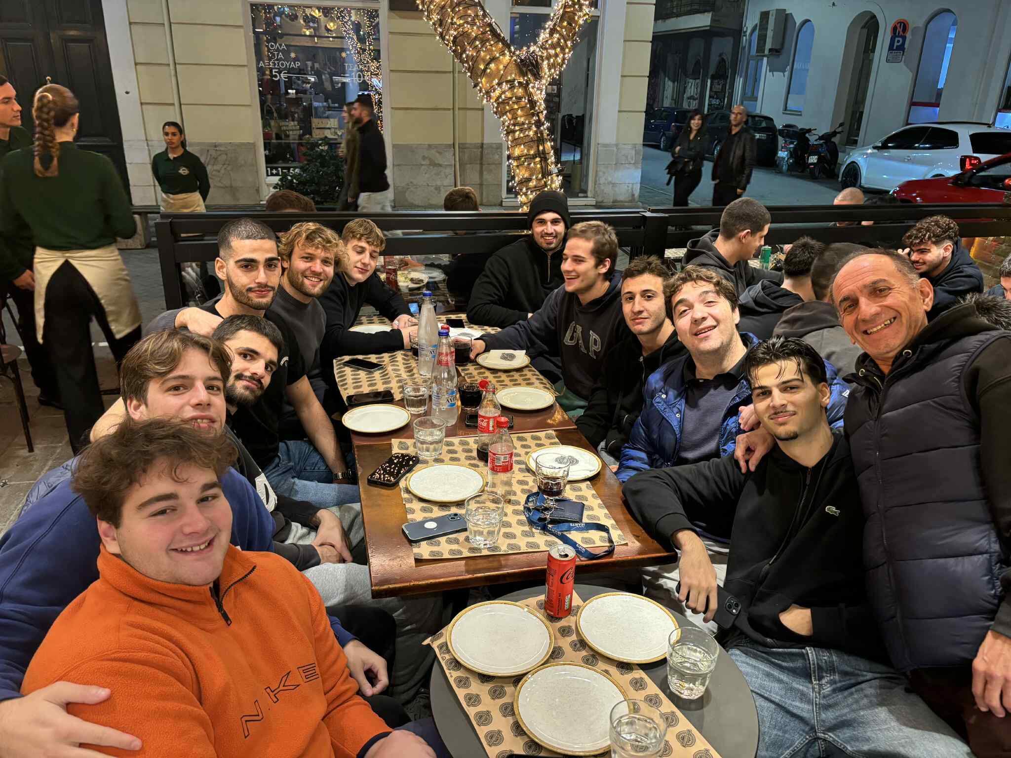Μέσα σε ζεστό και φιλικό κλίμα πραγματοποιήθηκε το καθιερωμένο γεύμα της ομάδας Α2 Ανδρών της Ν.Ε.Π., ενόψει της έναρξης του νέου πρωταθλήματος, που ξεκινά στις 16 Νοεμβρίου 2025. Το τραπέζι παρέθεσαν οι ιδιοκτήτες του γνωστού πατρινού καταστήματος «Χειροποίητο Ψητοπωλείο», Θανάσης και Σωτήρης Παπανικολόπουλος, δείχνοντας έμπρακτα τη στήριξή τους στον σύλλογο και στους αθλητές του.
