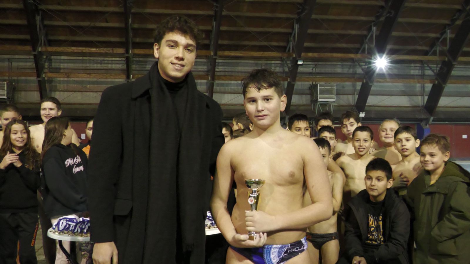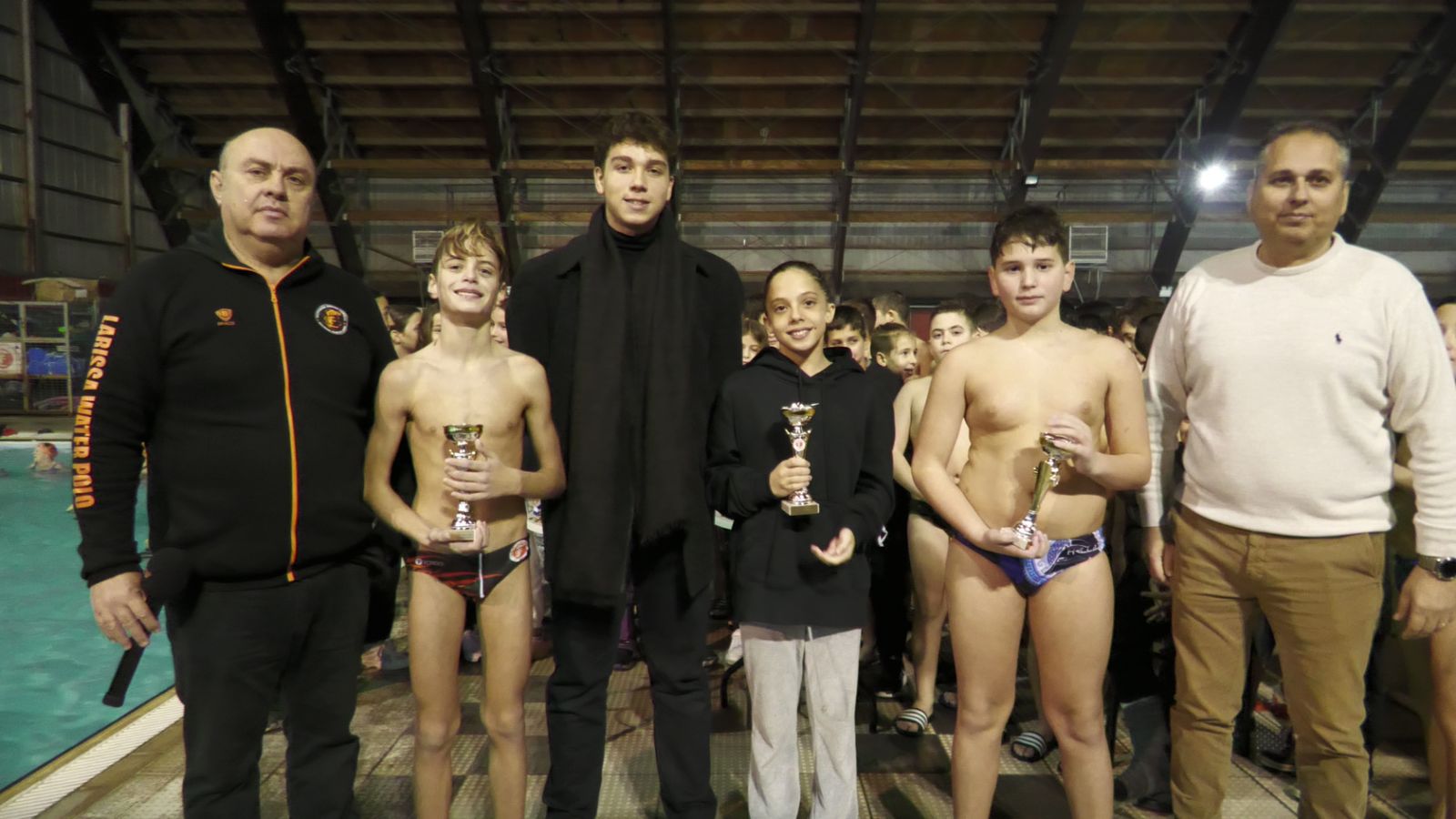 Τη βράβευση για λογαριασμό του Διοικητικού Συμβουλίου του ΝΟ Λάρισας πραγματοποίησε ο Γενικός Αρχηγός των τμημάτων Υδατοσφαίρισης, κ. Βαγγέλης Μπόμπολας.