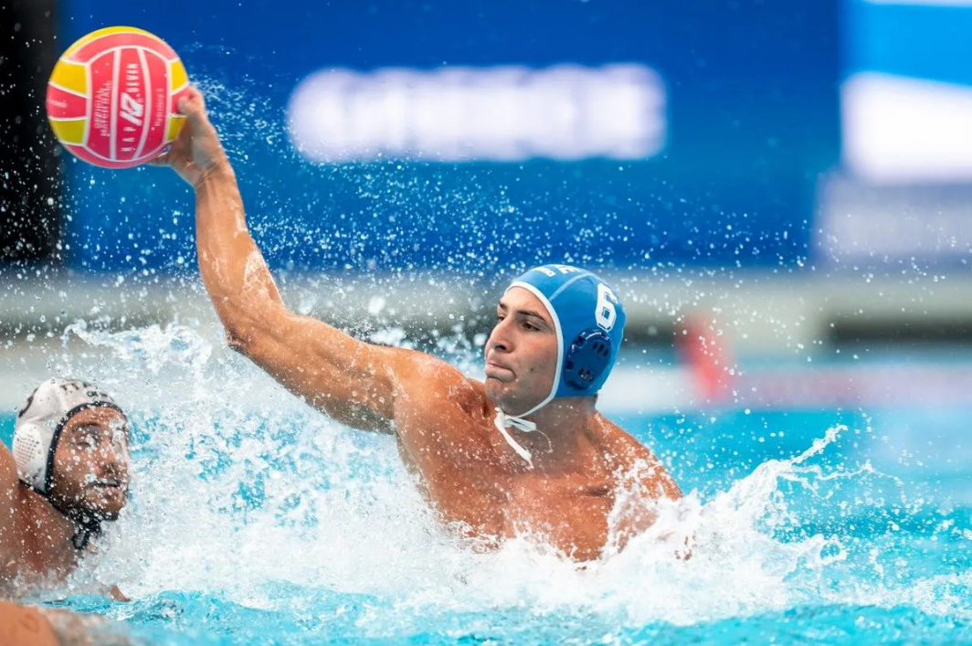 Το παιχνίδι ξεκίνησε με την Ισπανία να μπαίνει καλύτερα και να προηγείται με τέρμα του Bustos στον παραπάνω (5:50). Η γαλανόλευκη αστόχησε δις στον παραπάνω, η Ισπανία συνέχιζε να εκμεταλλεύεται το αριθμητικό της πλεονέκτημα και ο Sanahuja με ωραίο τελείωμα έκανε το 0-2 στο 2:50. Ο Ντίνος Γενηδουνιάς μείωσε με εύστοχη εκτέλεση πέναλτι, ο Τζωρτζάτος απέκρουσε το σουτ του Munarrizz, όμως η Ισπανία στην αμέσως επόμενη επίθεση προηγήθηκε με δύο τέρματα με «ύποπτο» ξανά τον Sanahuja. Ο Γενηδουνιάς σκόραρε από το ‘3’, οι δύο ομάδες αστόχησαν στον παίκτη παραπάνω και η πρώτη περίοδος έκλεισε στο 2-3.