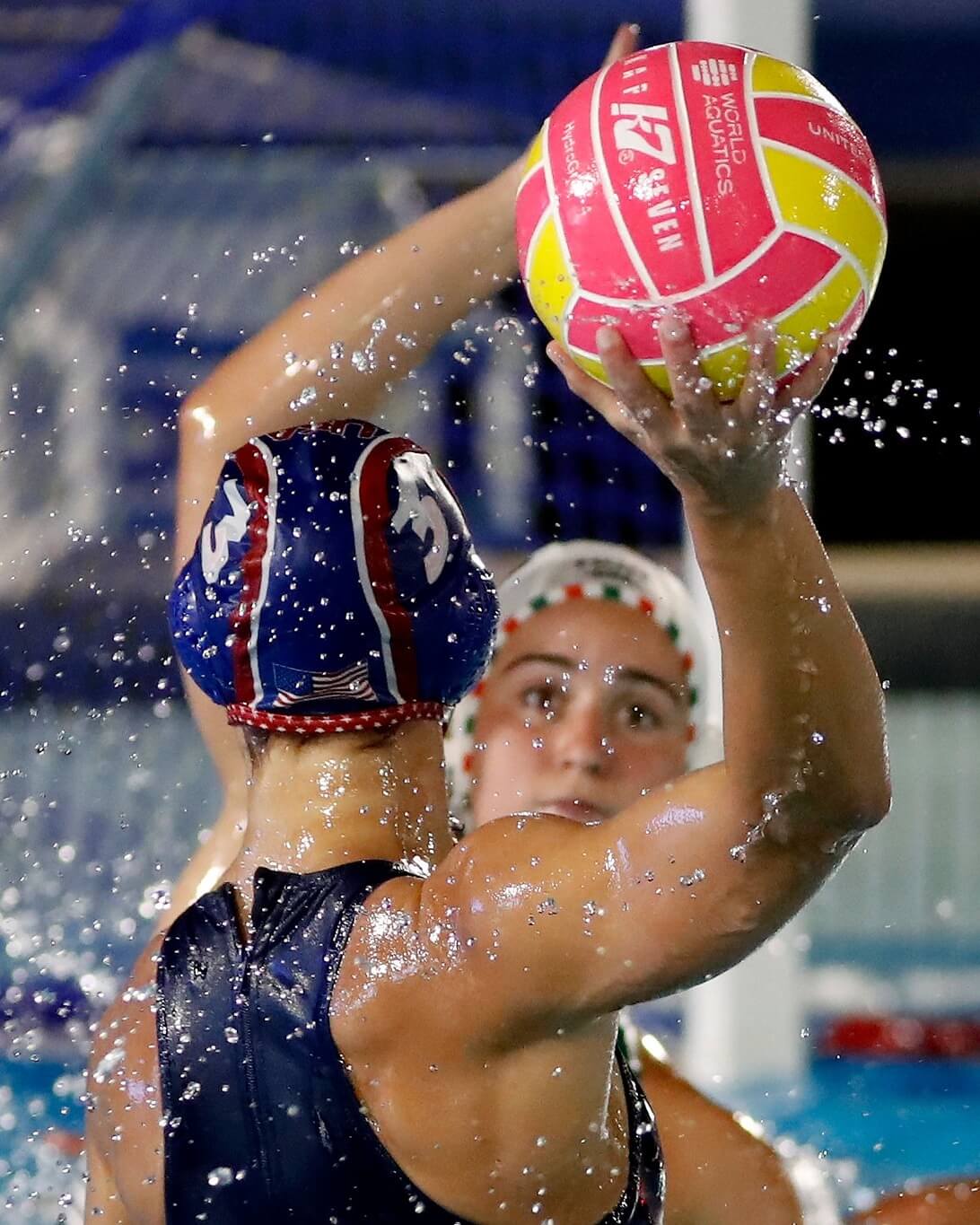 ΗΠΑ – Ιταλία 14 – 6 Μεγάλη εμφάνιση για τις Αμερικανίδες και θρίαμβος επί της Ιταλίας. Πρώτη θέση στον Όμιλο. Μόνο στο πρώτο οκτάλεπτο η Ιταλία μπόρεσε να είναι κοντά στο σκορ (4-3). Στη συνέχεις οι ΗΠΑ, με ένα κατά μέρους σκορ 5-0, ανέβασαν την διαφορά, ώστε τελικά να τελειώσει ο αγώνας με 8 γκολ διαφορά. Η Julia Bonaguidi με 6 γκολ και η Emily Ausmus με 4 είχαν το βάρος της επίθεσης των ΗΠΑ, ενώ από την Ιταλία μόνο η Eleonora Bianco, πέτυχε 2 γκολ.