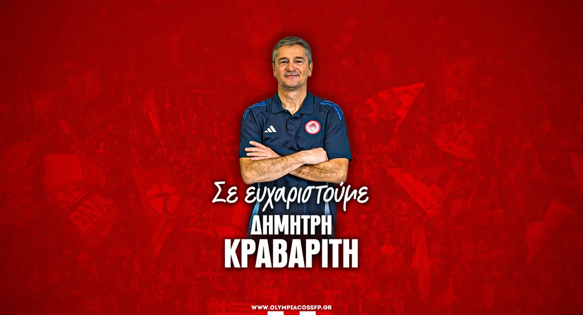 Την κοινή συναινέσει λήξη της συνεργασίας του με τον προπονητή του γυναικείου τμήματος υδατοσφαίρισης, Δημήτρη Κραβαρίτη ανακοίνωσε ο Ολυμπιακός, μέσω ανάρτησης στα Μέσα Κοινωνικής Δικτύωσης το μεσημέρι της Δευτέρας (5/1).