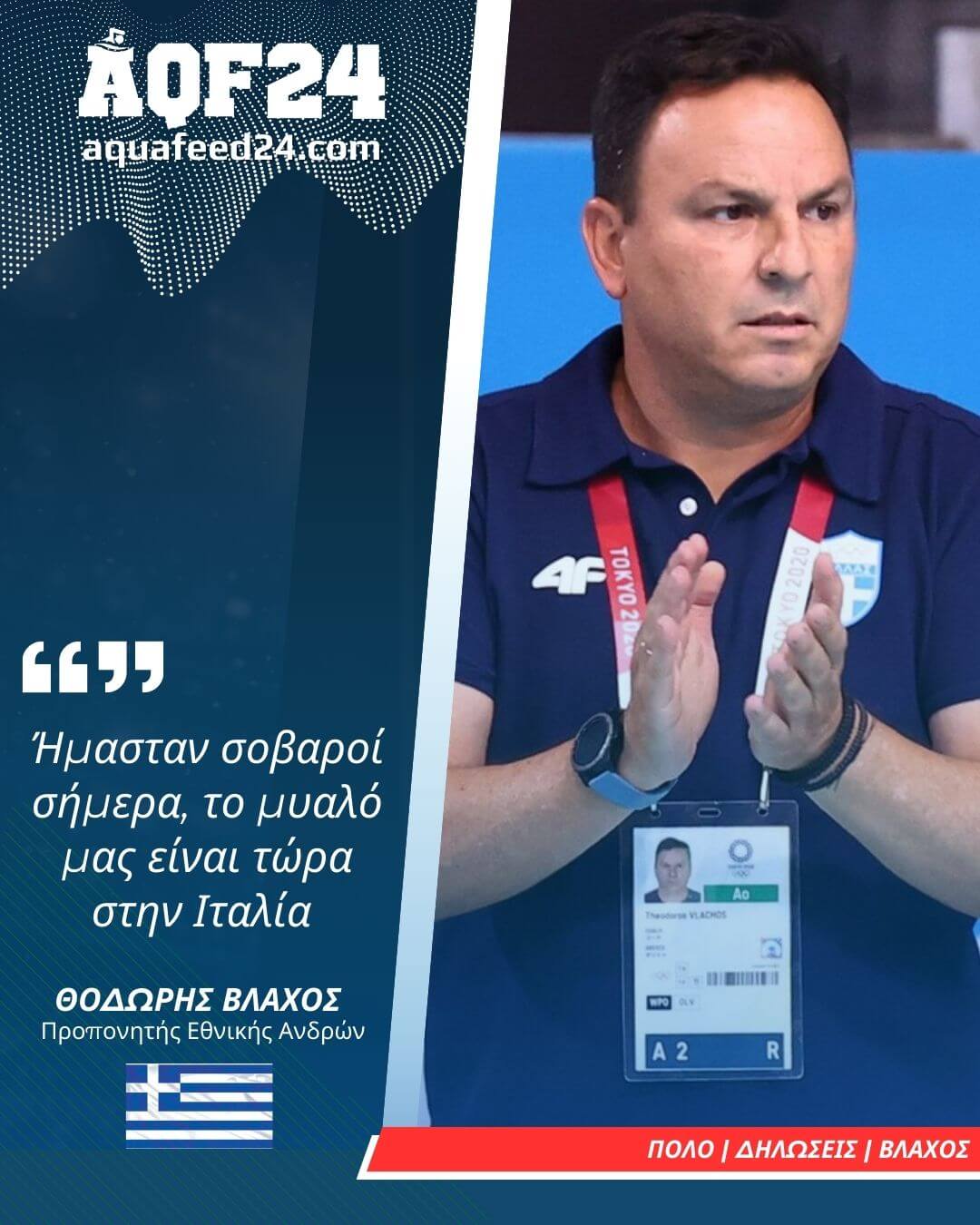 Ούσα φαβορί πριν το πρώτο σπριντ, η Εθνική Ομάδα Υδατοσφαίρισης των Ανδρών επικράτησε πολύ εύκολα της Τουρκίας και ξεκίνησε νικηφόρα τις υποχρεώσεις της στον ΣΤ όμιλο του Ευρωπαϊκού Πρωταθλήματος που διεξάγεται στο Βελιγράδι. Αμέσως μετά την λήξη της αναμέτρησης κόντρα στην ομάδα του Κώστα Λούδη, παραχώρησε δηλώσεις στην κάμερα της ΕΡΤ ο ομοσπονδιακός τεχνικός της ομάδας, Θοδωρής Βλάχος και στις οποίες τόνισε την σημασία της επερχόμενης αγωνιστικής που βρίσκει το ελληνικό σύνολο απέναντι στους Ιταλούς του Σάντρο Καμπάνια, καθώς αρκεί νίκη ή και ήττα στα πέναλτι προκειμένου να εξασφαλιστεί ο πρωταρχικός στόχος της 4αδας.