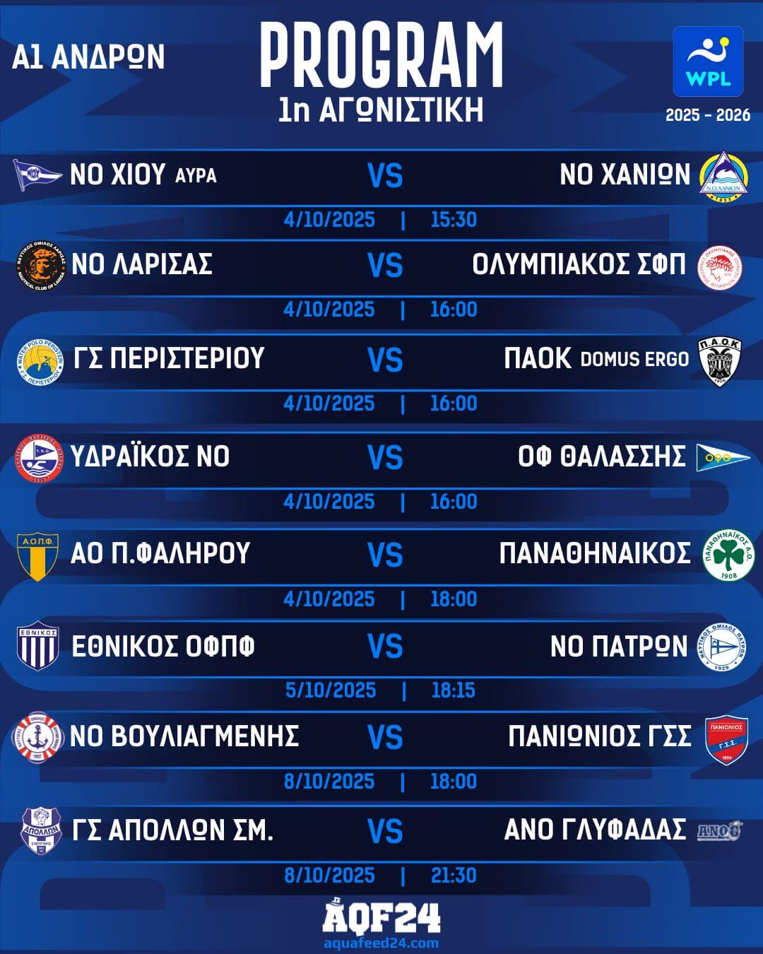 Η σεζόν 2025-26 στην Water Polo League Ανδρών ξεκινά αύριο, Σάββατο 4 Οκτωβρίου, με το ενδιαφέρον στραμμένο σε όλες τις πισίνες της χώρας, καθώς οι ομάδες μπαίνουν στη μάχη με στόχο ένα δυνατό ξεκίνημα.