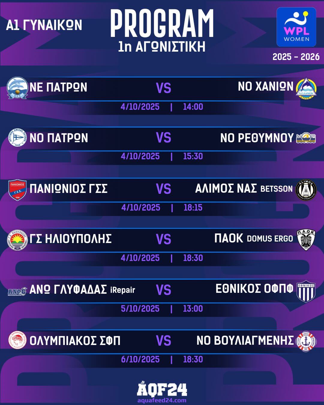 Το Σάββατο 4 Οκτωβρίου κάνει πρεμιέρα το πρωτάθλημα της Water Polo League Γυναικών 2025–26, με πέντε αγώνες στο πρόγραμμα και ένα ακόμα την Κυριακή. Οι ομάδες επιστρέφουν στη δράση και το ενδιαφέρον στρέφεται και πάλι στις πισίνες.