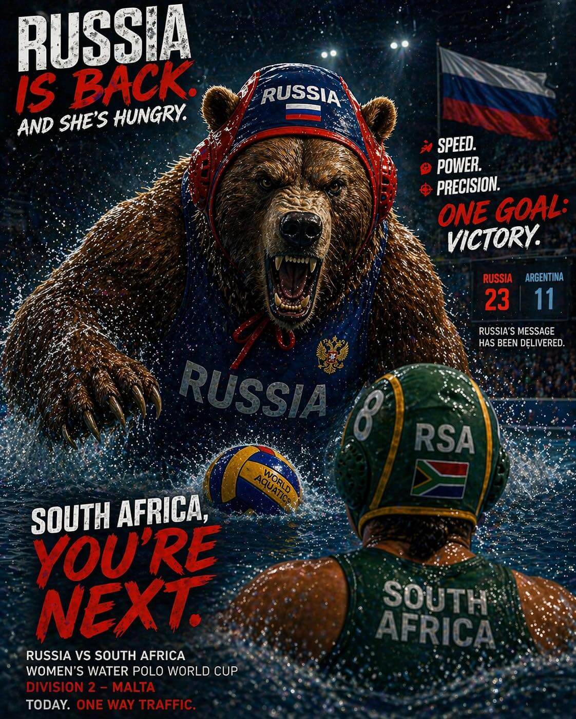 Πόλο World cup Women’s Division II: “RUSIA IS BACK”. Με 26-4 η Ρωσία συνέτριψε την Γερμανία και σήμερα έχει σειρά η Ν. Αφρική.